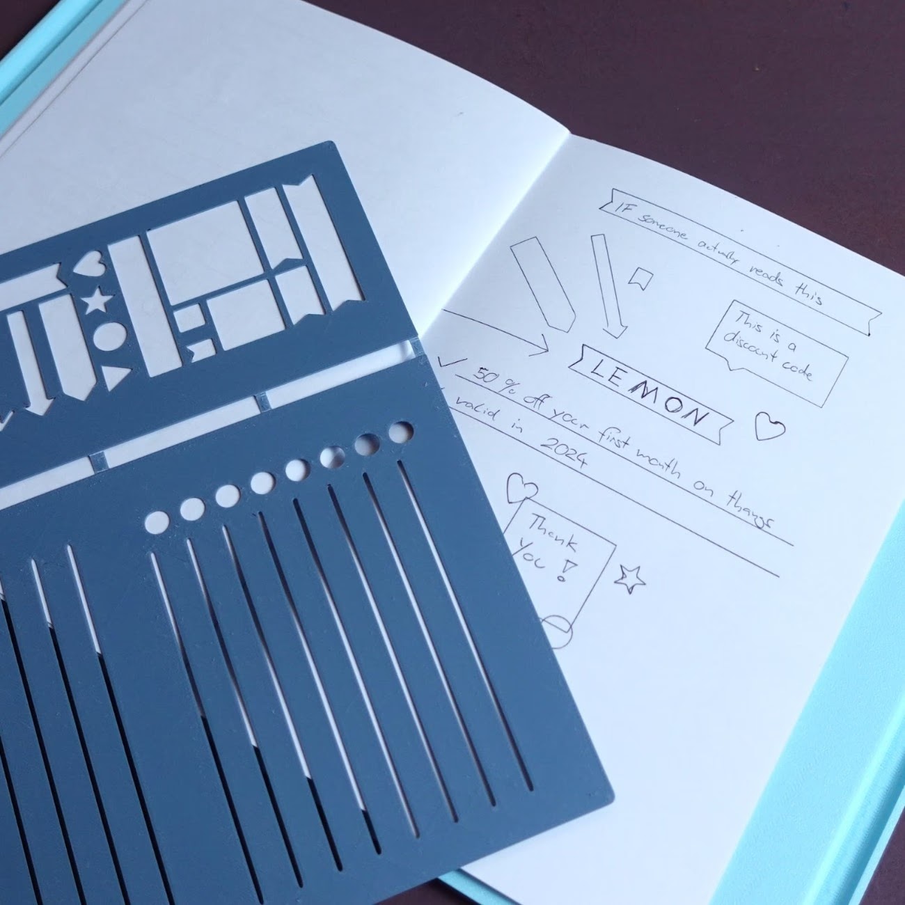 Stencils for my notebook designs. It works for both the classic notebook and the notebook with integrated pencil case.