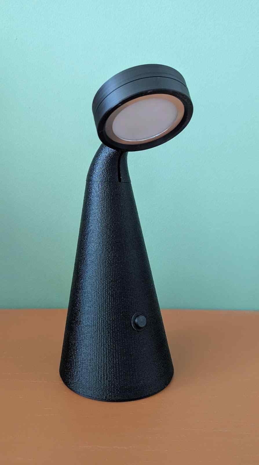 Simple desk lamp made for LED lamp kit MH001 - Easy to print and assemble small desktop lamp. It features swivel head and partially turning top part. It has also integrated a switch button and a place to put some weight for more stability. It is best to print the body in fuzzy skin mode to hide seams. Enjoy and let me know what you would improve.